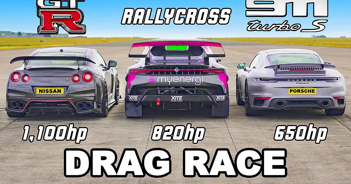 Τι συμβαίνει όταν έρχονται αντιμέτωπα ένα Nissan GT-R απόδοσης 1100 PS, μία Porsche 911 Turbo S και ένα αγωνιστικό rallycross στο drag strip;